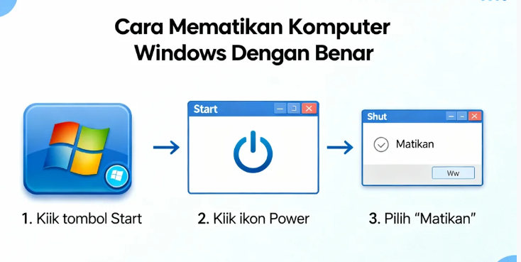 Mematikan komputer dengan benar adalah kebiasaan kecil yang memberikan dampak besar. Dengan melakukan shutdown melalui sistem operasi, menutup aplikasi terlebih dahulu, dan menghindari pemaksaan, Anda bisa menjaga performa komputer tetap optimal, data aman, dan perangkat lebih awet.