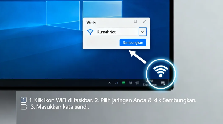 Menyambungkan WiFi ke komputer adalah proses menghubungkan perangkat komputer atau laptop ke jaringan internet nirkabel (wireless) menggunakan sinyal WiFi dari router atau hotspot.