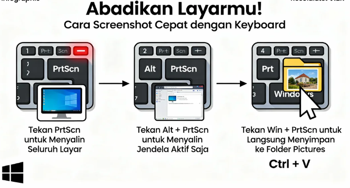Screenshot dengan keyboard dapat dilakukan dalam hitungan detik tanpa membuka aplikasi tambahan.